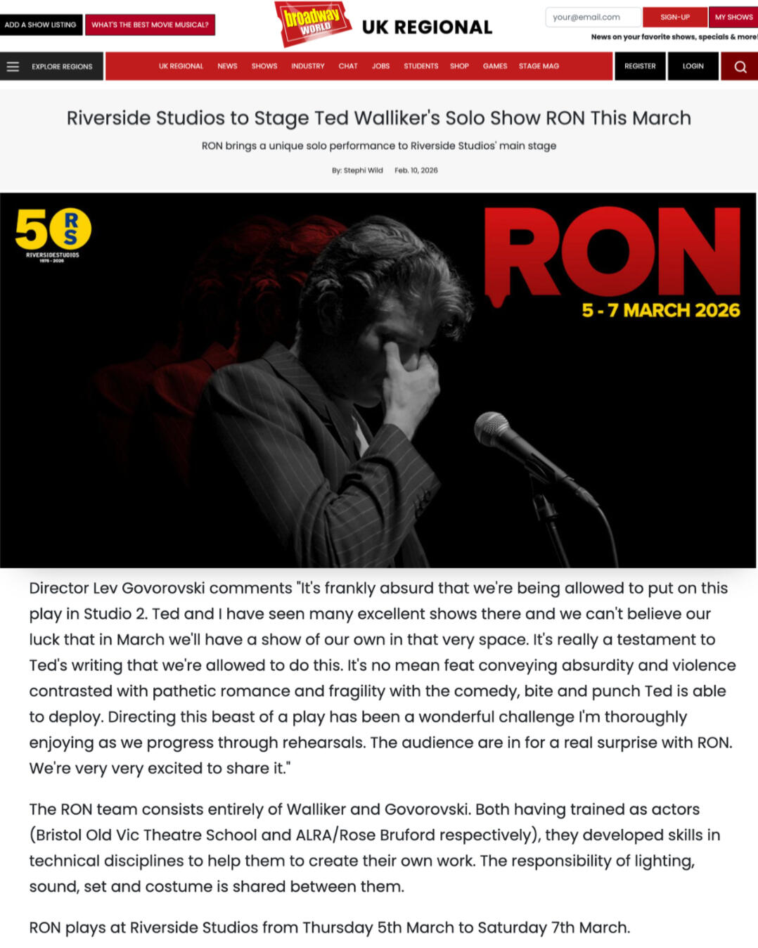 Lev is a London based Actor and Theatre Maker, I don’t know why I'm writing this in the third person, this is my website.Hello I'm Lev, You can click things and hopefully they’ll take you to the relevant places. You can also find some press about my work below.I'm currently (despite my best efforts) most well known for being the love child of Ebay and Love island.Apart from that I'm currently in rehearsals with the Ravenna Shakespeare Company, Playing Paris in R+J. I'll also be writing and directing there family show "Midsummer Madness"I've also recently rejoined the company of the five star sold out smash hit Burnt Up Love, this time as Associate Director.